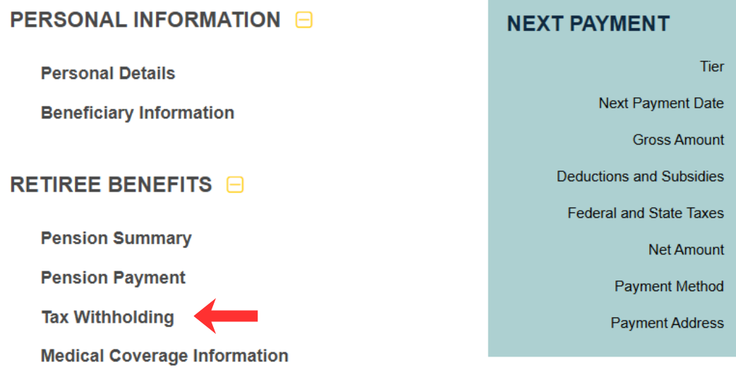 Click on the “+” symbol next to Retiree Benefits, then click Tax Withholding.