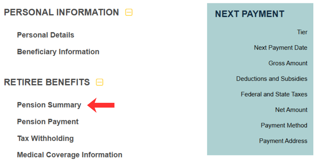 Click on Retiree Benefits, then click Pension Summary